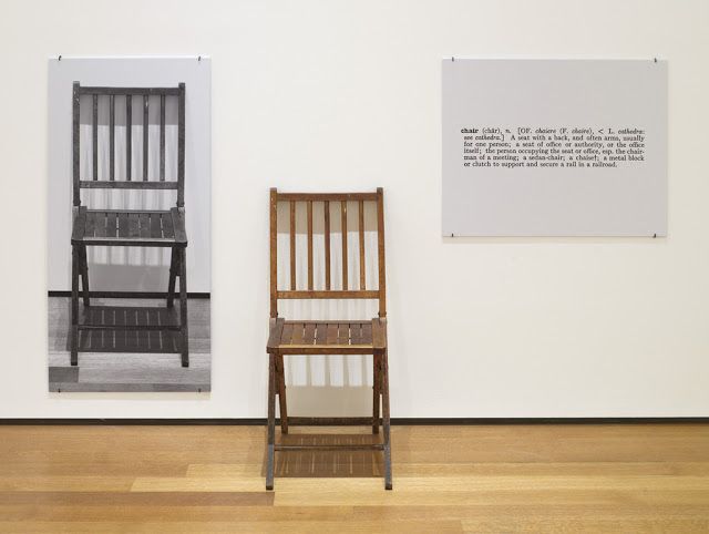 En 1965, Joseph Kosush expone su obra Una y tres sillas. Esta consistía en una silla (objeto real) expuesta junto a una fotografía de esa silla (objeto representado) y a una definición extraída de un diccionario de la palabra «silla» (concepto). Este planteo que nos trae Kosush, define al arte conceptual: no es necesario la representación de la silla ni siquiera la silla real, solo la idea de la silla puede ser la obra de arte en sí misma.